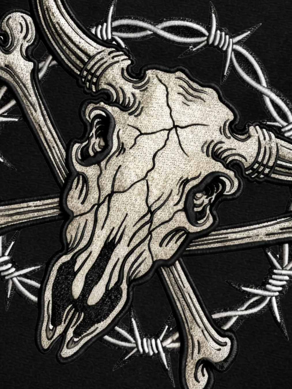 Buffalo Skull is a bold embroidered art design inspired by raw strength, resilience, and untamed nature. The powerful buffalo skull symbolizes endurance and dominance, making this design visually striking and meaningful.