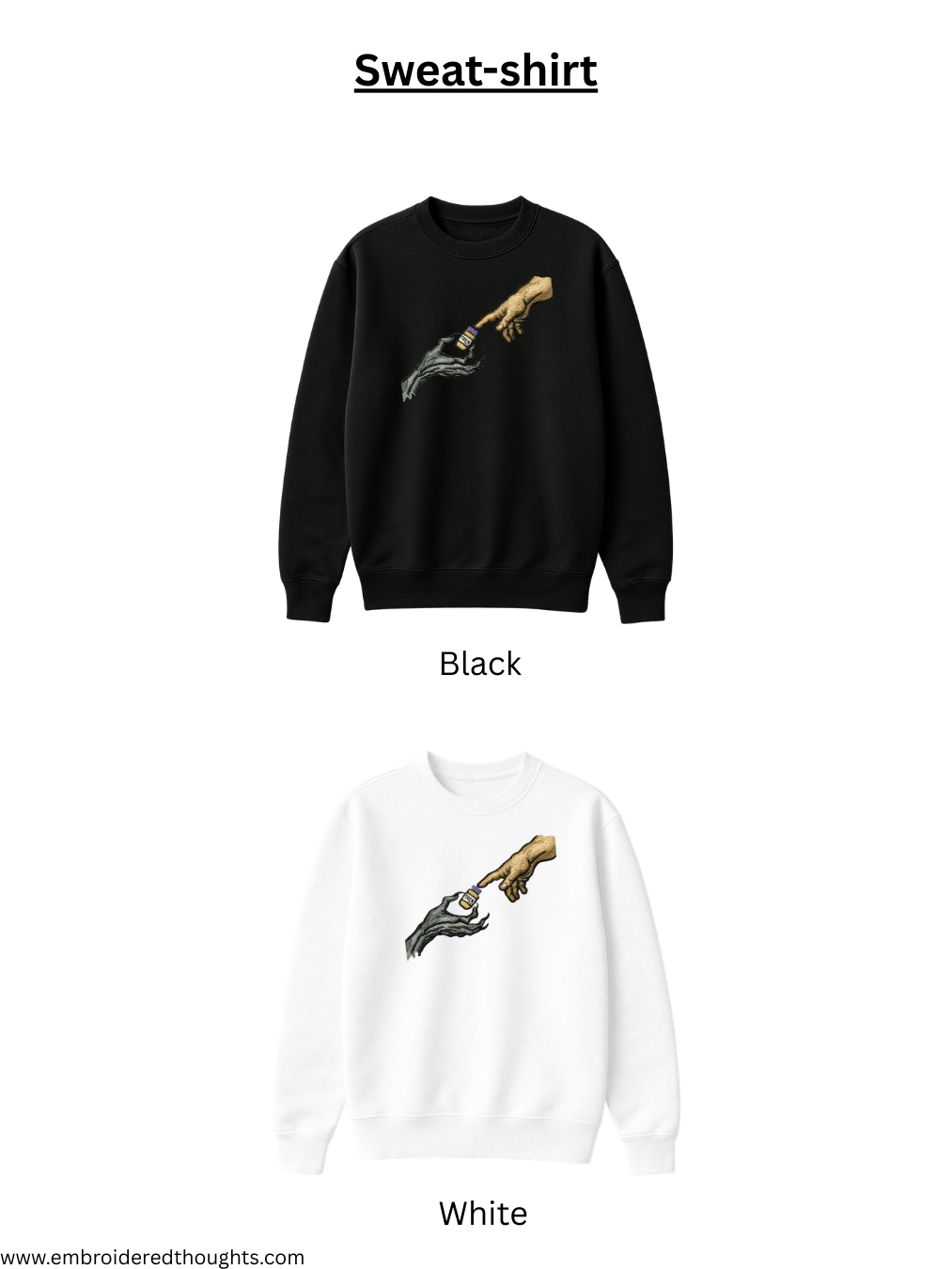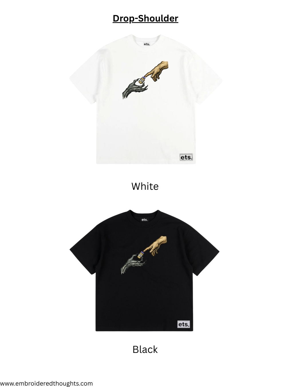 This design is executed with detailed embroidery to create texture, contrast, and depth, giving the artwork a premium and impactful presence. Creation Clash works seamlessly on regular fit t-shirts, drop shoulder t-shirts, hoodies, zip hoodies, and sweatshirts, adding a bold artistic edge to each piece.
